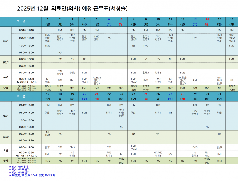【 2025년 12월 서청솔 의사 근무표 공지 】 페이지 정보 작성자 관리자 작성일25-11-27 09:12 이전글 다음글 목록 본문 【 2025년 12월 서청솔 의사 근무표 공지 】 이전글 다음글 목록